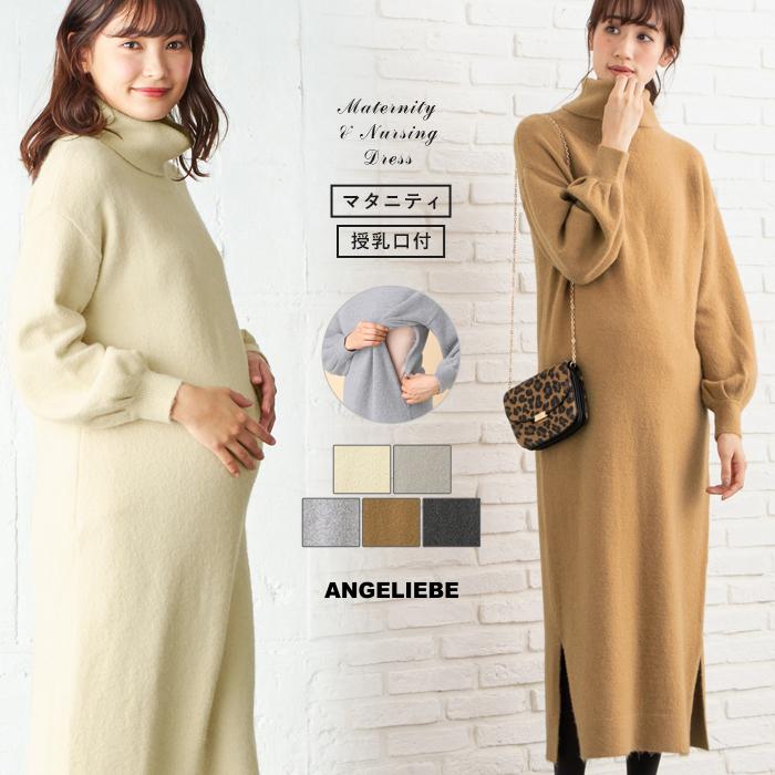 授乳服 マタニティ 服 ワンピース 授乳口付 もっちりニットタートルネックワンピース 妊婦服 マタニティー マタニティワンピース 秋 冬 秋冬 Angeliebe Paypayモール店 通販 Paypayモール